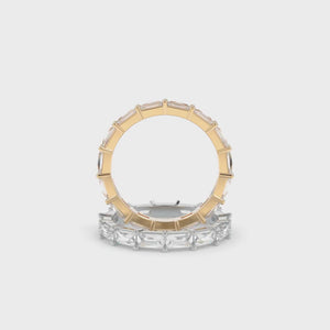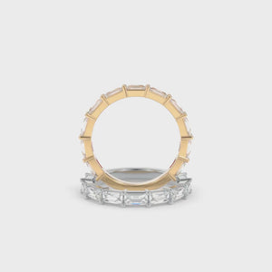 The Grace Band features Step Cut or French Cut Baguette lab grown diamonds and is available in your choice of 18k gold or platinum.