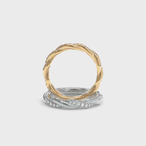 The Sierra band is a new evolution of our beloved Sydney design, offering a fresh interpretation of its graceful twist. Where Sydney features a fully diamond twist, the Sierra balances diamonds with polished metal, creating a refined contrast that is both modern and timeless. Inspired by the same spirit of elegance and intentionality, this design brings versatility to the collection, offering a bold yet understated option for everyday wear or as part of a wedding stack.