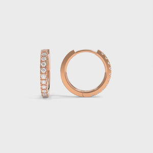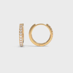 These simple yet elegant huggie earrings “hug” the earlobe and contain lab grown diamond accents. Pair them up with ourBeveled Bezel Heart Charm or ourSolid Heart Charm  to create a trendy look of your personal preference. Stay tuned for additional charms launching in 2024!