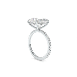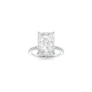 The Taylor Ring is crafted with an 9.5x7.5mm Radiant TrueGem moissanite center stone and features round lab grown diamond accents. This ring is available in Platinum.