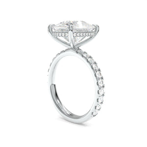 Renders and video depicting a 5.14ct E VS2 Cushion Lab Grown Diamond center stone.