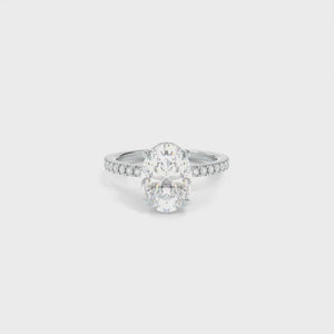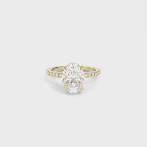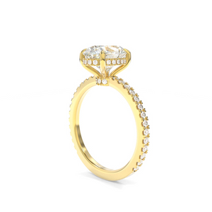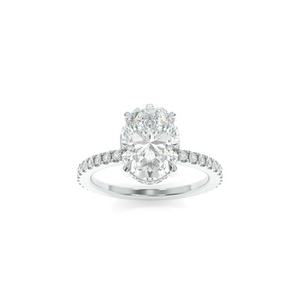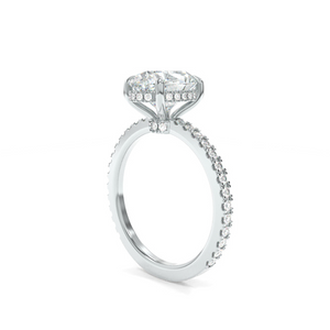 The Avery Ring is crafted with your selection of a moissanite or a lab grown diamond center stone and features round lab grown diamond accents. This ring is available in your choice of 18k gold or platinum.