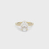 Model image depicting the Avery Ring with a 12x8mm Pear TrueGem Moissanite, stacked with the Kate Band.