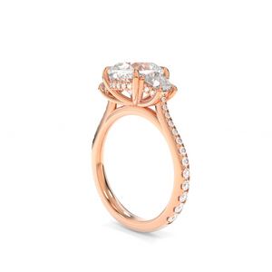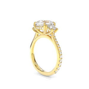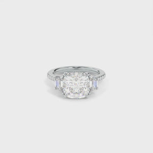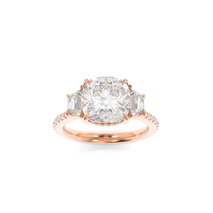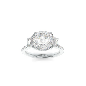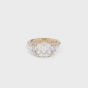The Blair Ring is crafted with a Round Brilliant center stone and trapezoid lab grown diamond accents, and is available in your choice of 18k gold or platinum.