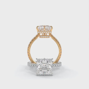 The LynnieBeth Ring is a personal design expression from our True Gem Founder, Lynne. Unapologetically leaning into her own design aesthetic, the LynnieBeth ring is named for her childhood nickname and is an evolution of her original engagement ring. She pulled from the experience and practice acquired over the past 20 years dedicated to jewelry design to arrive at a double diamond wrap, french set lab grown diamond accents and 7 vintage inspired micro-talon prongs holding the center stone. This ring is available in your choice of 18k gold or platinum and crafted with your choice of a moissanite or a lab grown diamond center stone.