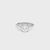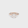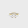 Model image depicting an Avery Solitaire with a 10x7mm Pear TrueGem Moissanite, stacked with the Amelia Medium Band
