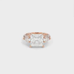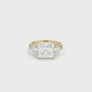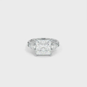 The Charlotte Solitaire is a study in balance, where proportion and precision come together to create a quietly bold three-stone design. At the heart of Charlotte’s appeal is the seamless relationship between the center diamond and its perfectly scaled pear-shape side stones, carefully chosen to complement, not compete.
