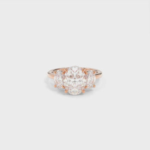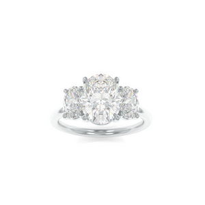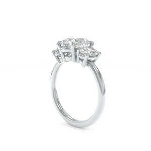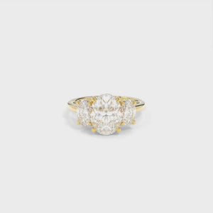 The three-stone setting is a meaningful nod to your past, present, and future. What makes Samantha especially unique is how low it sits to the finger, with three sculpted baskets coming together in a seamless, elegant structure. It's a piece full of symbolism, strength, and subtle detail.