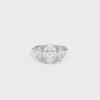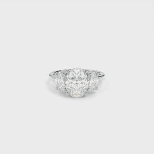 The Samantha Solitaireis named for its solid metal shank, but the name is a bit of a misnomer. This design is actually an iconic three-stone engagement ring. Its side stones are carefully scaled to closely mirror the shape and size of the center stone, creating a balanced and intentional look that stands on its own.