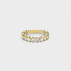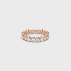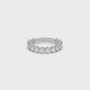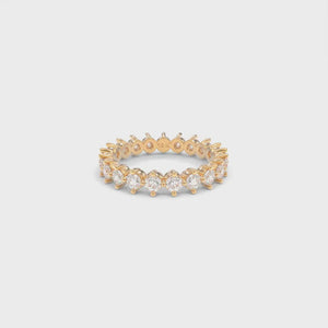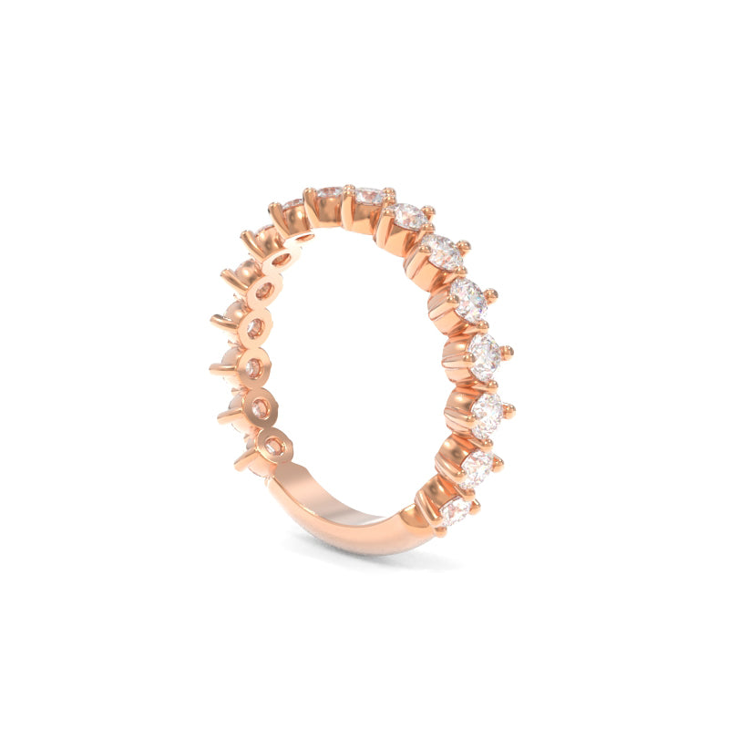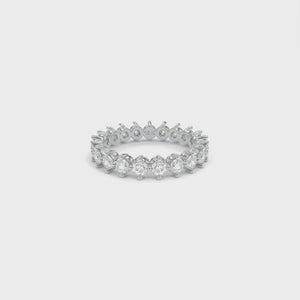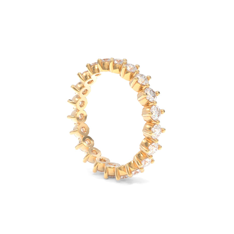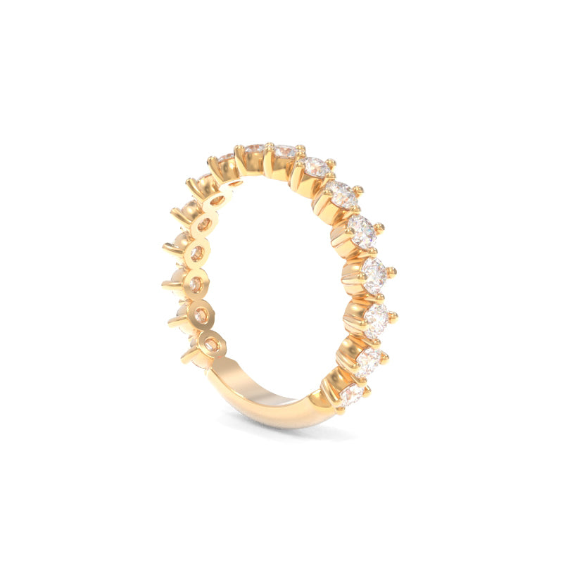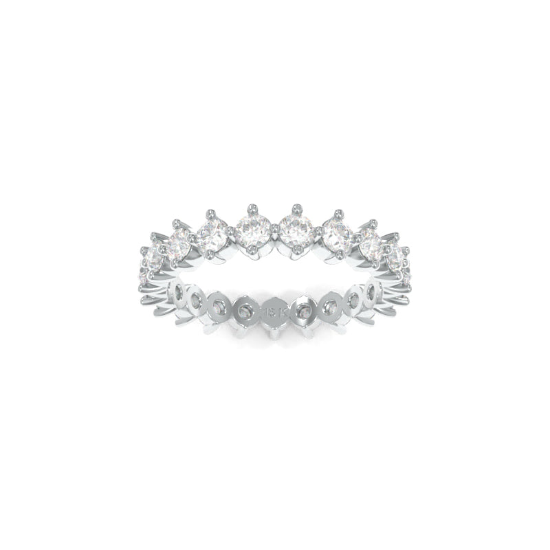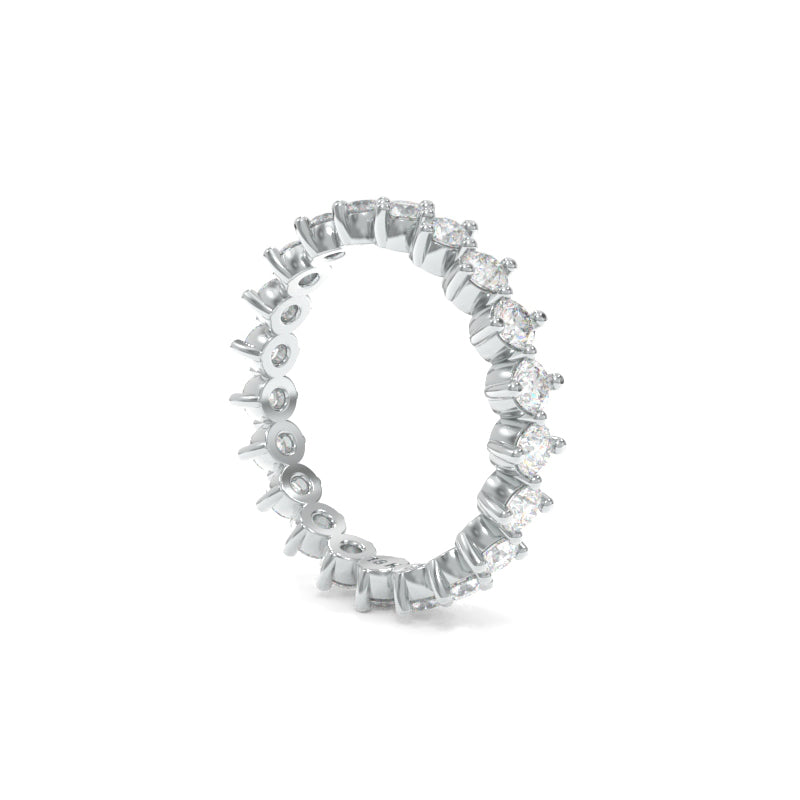 • Available as a round cut diamond eternity band or in a re-sizable version with diamonds set around three-quarters of the band
