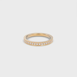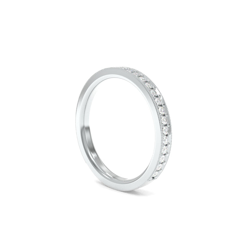 The Hallie Band features round lab grown diamonds and milgrain details and is available in your choice of 18k gold or platinum.