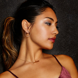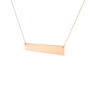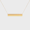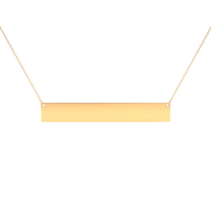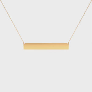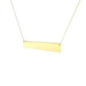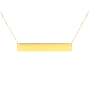 Our engravable solid gold bar pendant necklace is a simple yet personal piece. This solid gold design can be engraved with a name or initials.