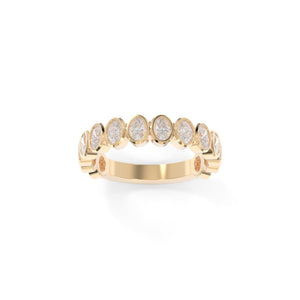 The Maya Band Bezel in petite size offers a delicate yet striking take on a classic design. Featuring dainty bezel-set diamonds, this band is perfect for those who love understated elegance with a modern twist. This band is available in 3/4 with traditional north-south diamond orientation. Whether worn alone, stacked, or as a wedding band, this petite band brings a touch of refined beauty to any occasion.