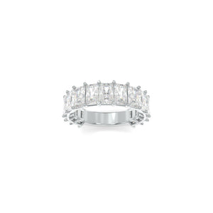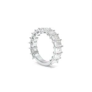 The Maya Radiant Band is an iconic design that seamlessly marries personal style with a declaration of devotion. Featuring 5.00ctw of 5x3mm Radiant Cut Lab Grown Diamonds set in recycled Platinum, this piece embodies timeless sophistication with a bold, refined brilliance.
