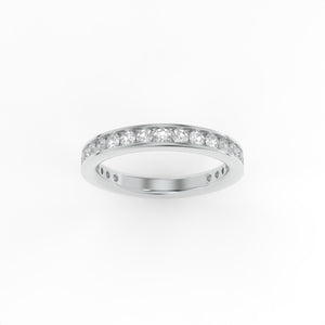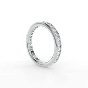 The Parker Band features channel set baguette lab grown diamonds and is available in Platinum.