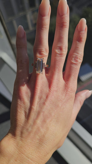 This Lauren Ring is finished in Recycled 18k Champagne Gold, showcasing a 5.20ct F VS1 Baguette Lab Grown Diamond, personally curated by True Gem founder Lynne Armstrong.