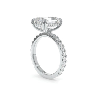 This Rachel Ring is set in Platinum, modified to sit flush, and features a 4.10 E VVS2 French Cushion Lab Grown Diamond, personally curated by True Gem founder Lynne Armstrong