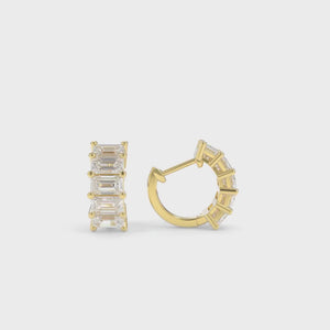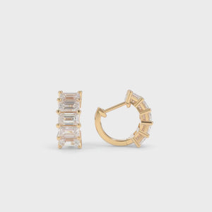These Maya Emerald Cut Huggies are available in 18k Recycled Gold,featuring Emerald Cut lab grown diamonds. These huggies give a bold look without being large or heavy. They are easily dressed up for a night out or down for every day wear.