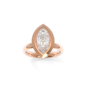 The Betty Solitaire is crafted with your selection of a moissanite or a lab grown diamond center stone. This ring is available in your choice of 18k gold or platinum.