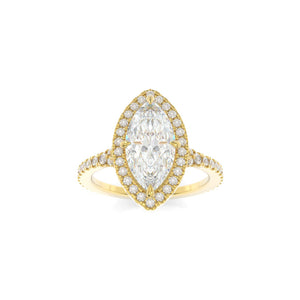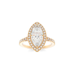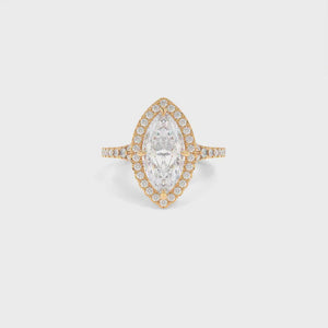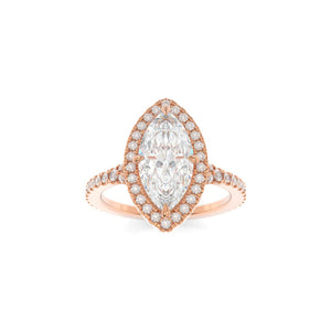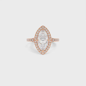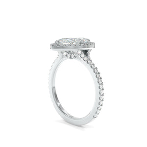 The Leighton Ring is a graceful fusion of elegance and engineering. Its soft-cornered halo, delicately set with diamonds, frames the center stone with subtle, contrast. A thoughtfully designed split shank adds dimension and visual interest, creating an alluring silhouette from every angle.