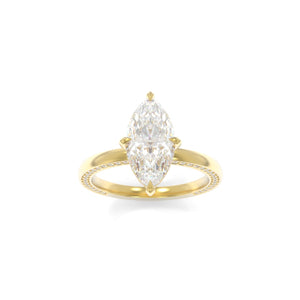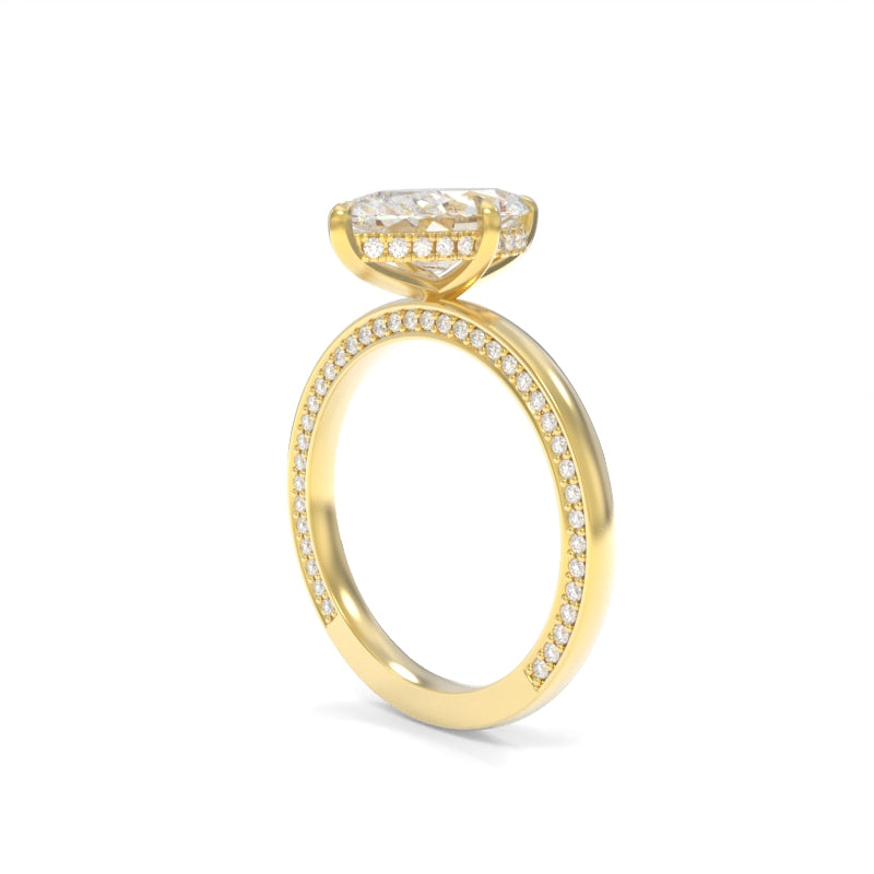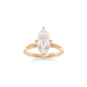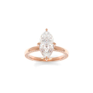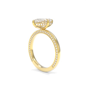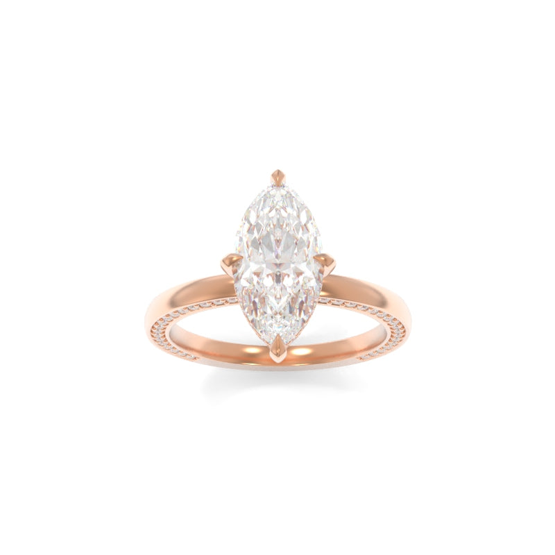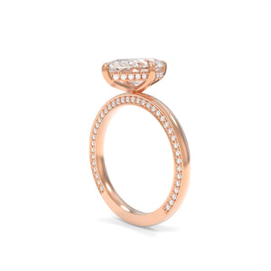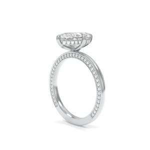 The Olivia Ring is a study in contrast- understated from one angle, unexpectedly dazzling from another. What appears to be a classic solitaire reveals its true character in the details: a hidden diamond halo softly illuminates the center stone, while additional diamonds are artfully set in the through-finger view on both sides, creating a unique and unexpected sparkle.