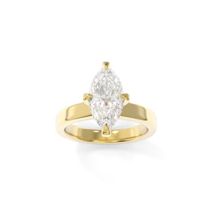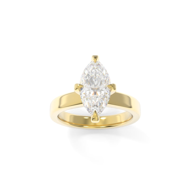 Paired with a 3.1mm solid band in a soft square profile, the Simone Solitaire offers a substantial, sculptural feel that’s both sleek and comfortable. With its strong lines and quiet confidence, this design is perfect for those who appreciate simplicity with impact, and a solitaire that stands unapologetically on its own.