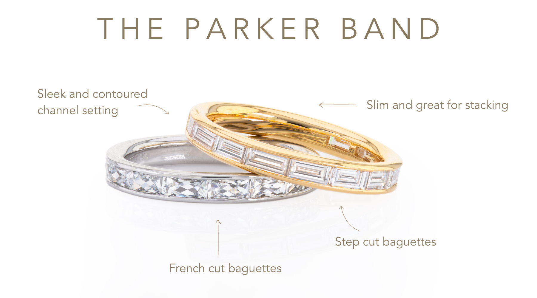 The Parker Band is a modern interpretation of a classic channel set band. Every contour and curve has been obsessively perfected to elevate the experience of the wearer and reinvent this 90's icon.