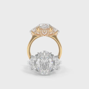 Render depicting a 12.8x9.1mm OvalCenter Stone with 7.8x4.8x3.1mm Cadillac Side Stones