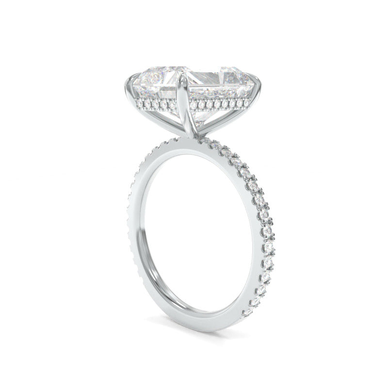 This design features a refined 1.5mm diamond shank, adding delicate sparkle without compromising the clean aesthetic that defines the Taylor silhouette. Signature talon prongs and the iconic hidden halo bring subtle complexity to an otherwise effortless design.