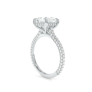 The Vanessa Ring, named after an inspiring client, is a striking expression of True Gem design nuance. Known for its signature triple row of rolled pavé, this setting offers a distinctive take on sparkle-unlike traditional three-sided pavé, the diamonds gently wrap around gently all visible surfaces, creating a seamless and fluid shimmer from every angle.