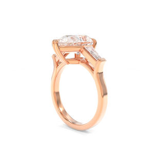 The tapered baguette side stones are perfectly scaled to complement the center stone of your choice, creating a balanced and elegant silhouette that feels both refined and enduring. Scarlett is a forever piece, designed to transcend trends and remain effortlessly stylish for generations to come. The Scarlett Ring is crafted with your selection of 18k gold or platinum.