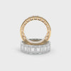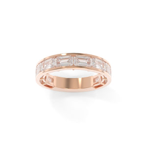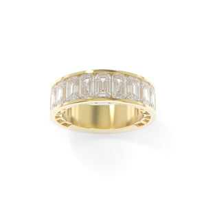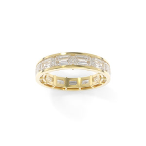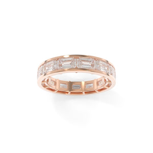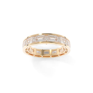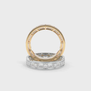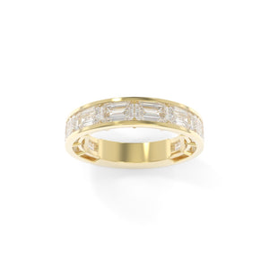 The Maya Band Channel in the full sizes offers a chic and modern interpretation of a playful '90s design aesthetic. Featuring channel-set diamonds for a sleek, refined look, this band is available in both 3/4 or full eternity options, allowing you to customize it to your personal style. Choose between the classic north-south diamond orientation or opt for the bold and unique east-west orientation. Whether worn as a wedding band, stacked with others, or as a statement piece on its own, the Maya Channel Band brings a fun yet sophisticated edge to your jewelry collection.