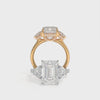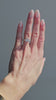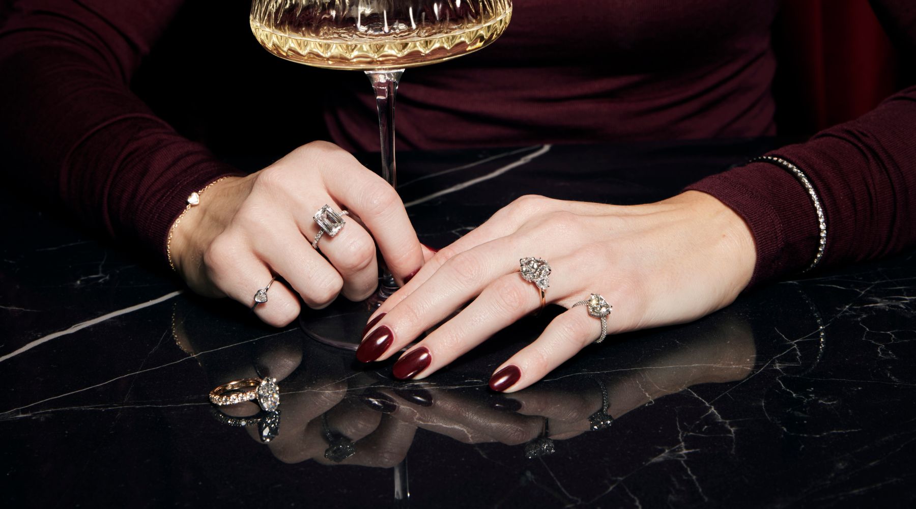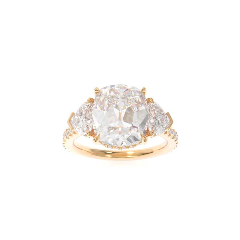 The Michelle Ring is inspired by a close friend of our founder. “To honor my friend, Michelle, this bold design pulls focus to an elegant ‘through finger view’ and is obsessively finished with sophisticated details. I love how subtle the diamond hearts are on this design. My only regret is that I fell short of representing her hilarious wit and endless compassion.” The Michelle is crafted with your selection of a moissanite or a lab grown diamond center stone and features heart shaped lab grown diamonds side stones and more diamond accents. This ring is available in your choice of 18k gold or platinum. Keep a lookout for The Michelle Ring in Cadillac side stones coming soon!