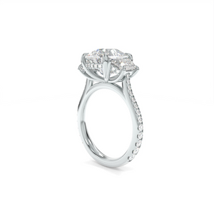 The Blair Ring is crafted with a Round Brilliant center stone and trapezoid lab grown diamond accents, and is available in your choice of 18k gold or platinum.