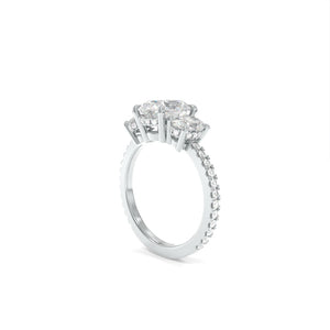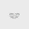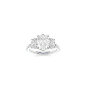 The Samantha Ring is crafted with a 9x7mm Modern Oval TTG Moissanite center stone, lab grown diamond accents, and is available in 18K White Gold.