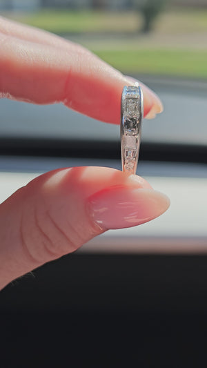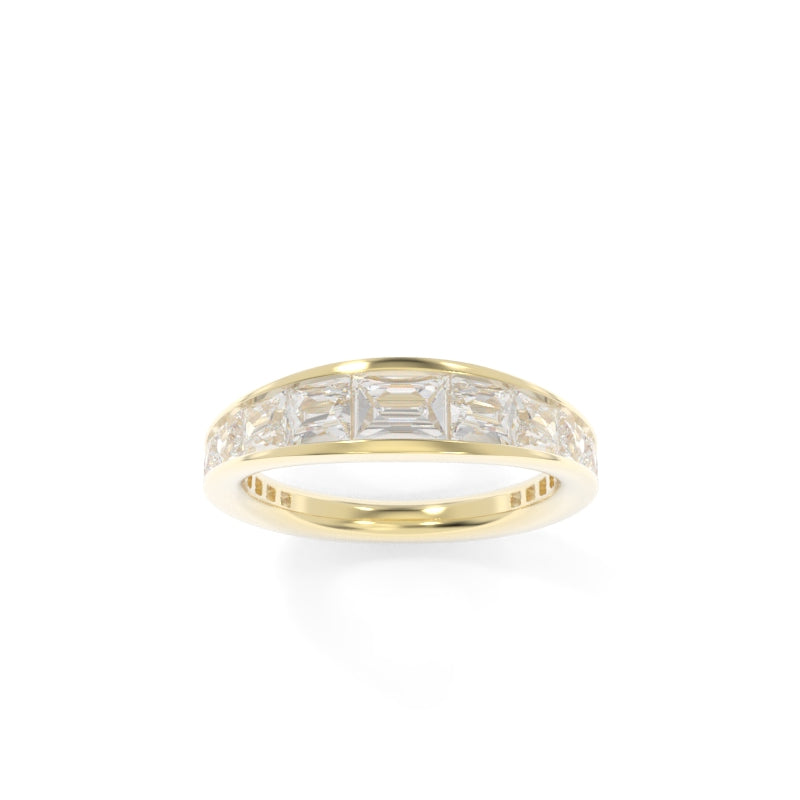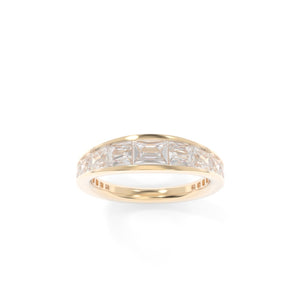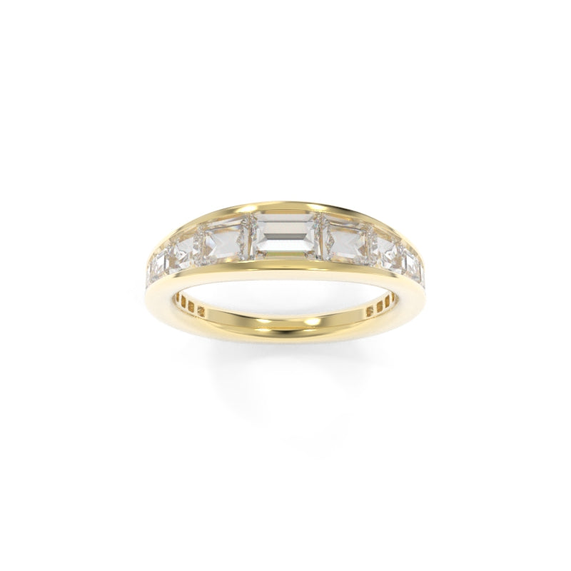 The Aubrey is an ode to our love affair with your choice of french cut or step cut diamonds. Tapering down from the center, these diamonds are set in minimalist, buttery channels composing a spectacular seamless sparkle. Aubrey is a bold statement ring that can be worn alone or as an addition to an extraordinary ring stack.