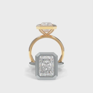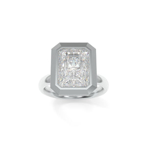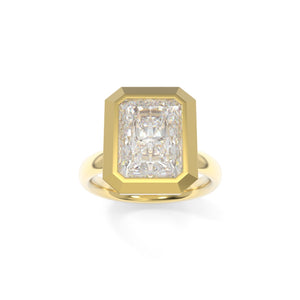 The Betty Solitaire distills the bold elegance of the Betty Diamond Ring into its purest form. Featuring the same architectural pseudo-bezel and minimalistic prongs that elevate the center stone, this version forgoes the diamond halo to embrace a sleek, refined aesthetic.