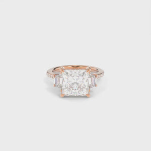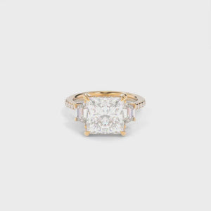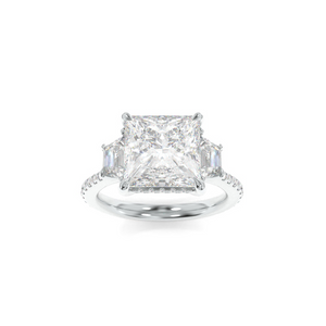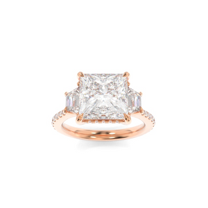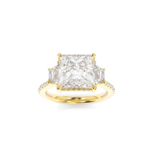 The Blair Ring is crafted with a Round Brilliant center stone and trapezoid lab grown diamond accents, and is available in your choice of 18k gold or platinum.