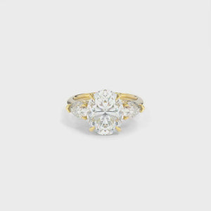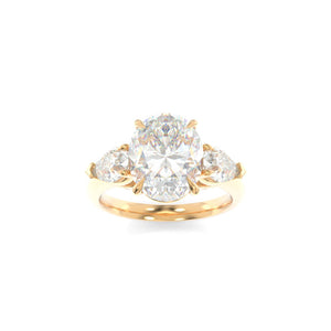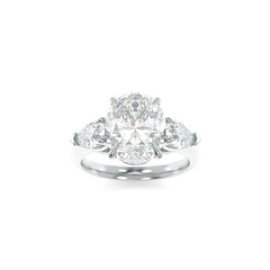 The Charlotte Solitaire is a study in balance, where proportion and precision come together to create a quietly bold three-stone design. At the heart of Charlotte’s appeal is the seamless relationship between the center diamond and its perfectly scaled pear-shape side stones, carefully chosen to complement, not compete.