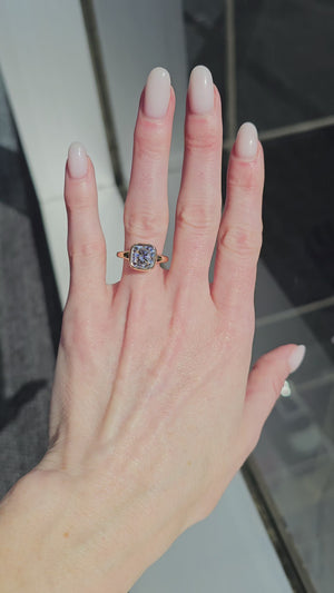 This Este Solitaire is finished in Recycled 18k Champagne Gold, showcasing a 3.05ct. D VS1 Cushion Lab Grown Diamond, personally curated by True Gem founder Lynne Armstrong.