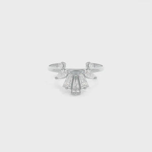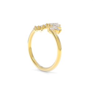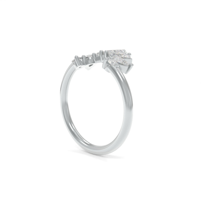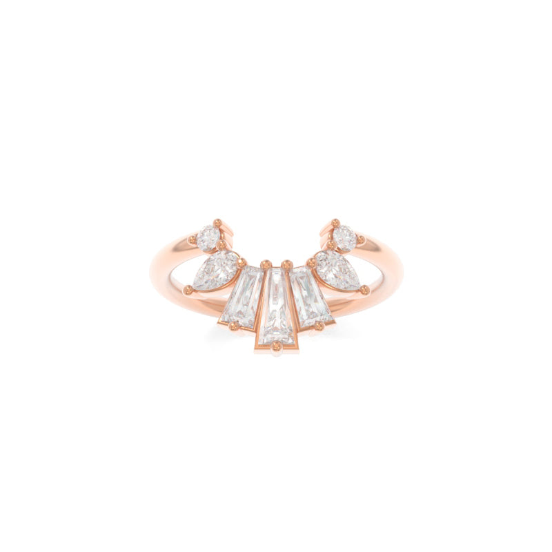 The Faye Band features round, pear and tapered baguette lab grown diamonds and is available in your choice of 18k gold or platinum.
