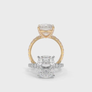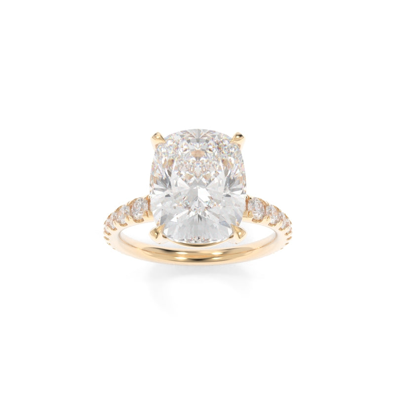 Render depicting an 11.5x 9mm Elongated Cushion center stone.