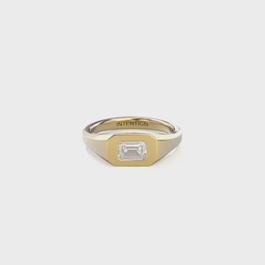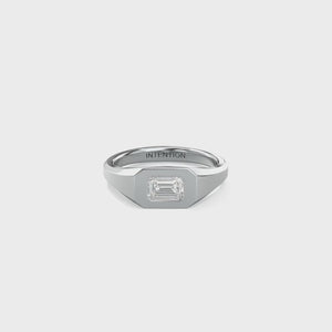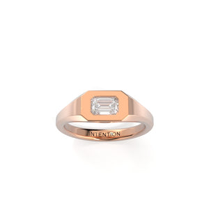 The Intention Signet Ring is designed to represent a profoundly personal message or intention to the wearer. This message can be represented by an engraving inside the shank and is available in recycled 18K Recycled Gold or Platinum.