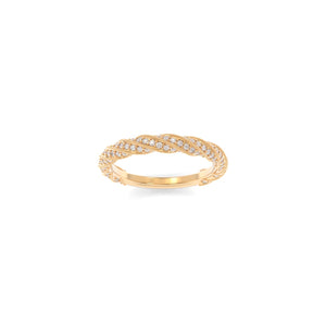 The Louisa Band features round lab grown diamonds and milgrain details and is available in 18K Champagne Gold.