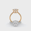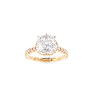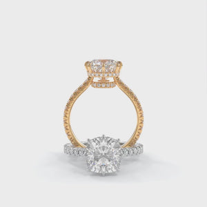 The LynnieBeth Ring is a personal design expression from our True Gem Founder, Lynne. Unapologetically leaning into her own design aesthetic, the LynnieBeth ring is named for her childhood nickname and is an evolution of her original engagement ring. She pulled from the experience and practice acquired over the past 20 years dedicated to jewelry design to arrive at a double diamond wrap, french set lab grown diamond accents and 7 vintage inspired micro-talon prongs holding the center stone. This ring is available in your choice of 18k gold or platinum and crafted with your choice of a moissanite or a lab grown diamond center stone.