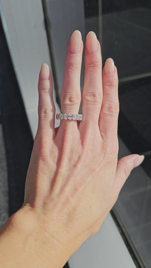 The Maya Oval Band is an iconic design that seamlessly marries personal style with a declaration of devotion. Featuring 3.10ctw of 5x3mm oval lab grown diamonds set in recycled platinum, this piece embodies timeless sophistication with a bold, refined brilliance.