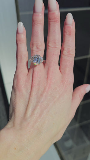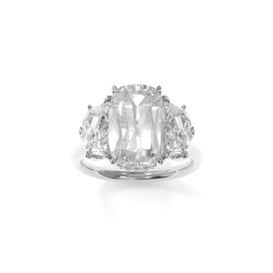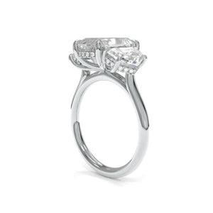 This Michelle Ring is finished in Recycled Platinum, showcasing a stunning 3.58ct. E VVS2 French Cushion Lab Grown Diamond personally curated by True Gem founder Lynne Armstrong.