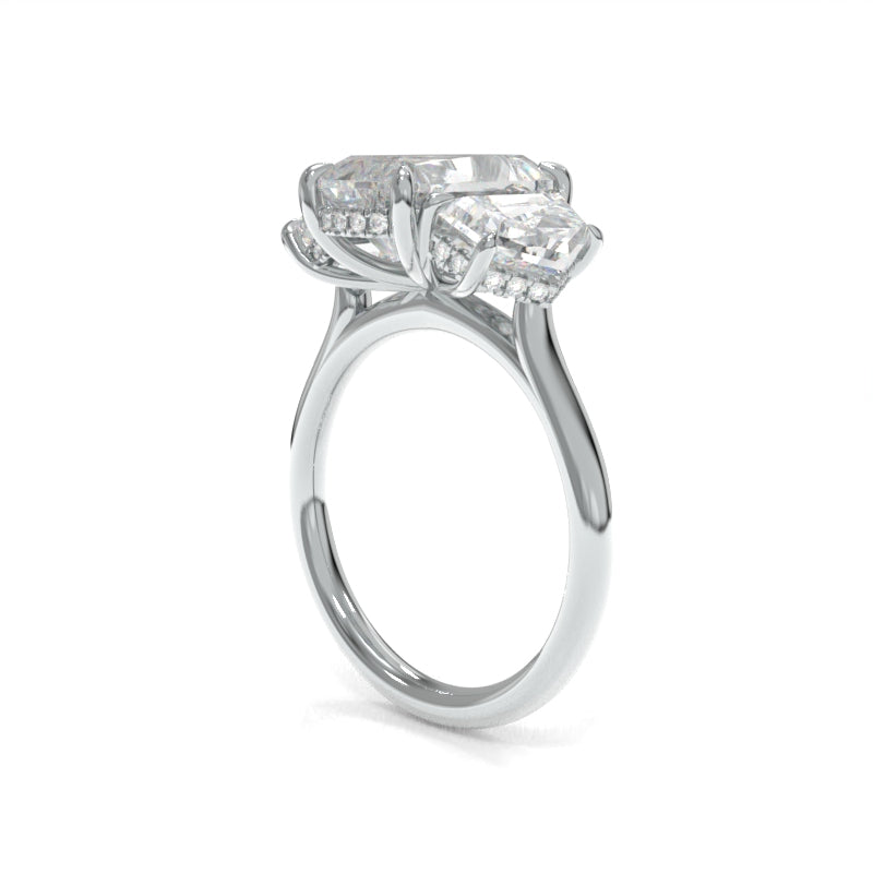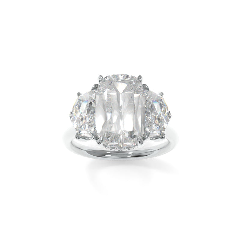 The Michelle Ring (Cadillac Version) is designed to make a bold yet refined statement. Crafted with Cadillac accent diamonds, each one is precisely scaled to enhance the brilliance of the center stone, creating a seamless flow that draws the eye to the centerpiece. The delicate cathedral setting adds a touch of timeless elegance, while the low-set basket offers a perfect balance of comfort and style. Inspired by a personal collaboration between our founder, Lynne, and her friend Michelle, this ring embodies a shared passion for beauty, authenticity, and self-expression, resulting in a truly captivating piece.