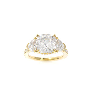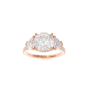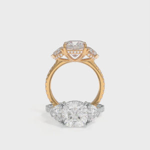 The Michelle Ring is inspired by a close friend of our founder. “To honor my friend, Michelle, this bold design pulls focus to an elegant ‘through finger view’ and is obsessively finished with sophisticated details. I love how subtle the diamond hearts are on this design. My only regret is that I fell short of representing her hilarious wit and endless compassion.” The Michelle is crafted with your selection of a moissanite or a lab grown diamond center stone and features heart shaped lab grown diamonds side stones and more diamond accents. This ring is available in your choice of 18k gold or platinum. Keep a lookout for The Michelle Ring in Cadillac side stones coming soon!