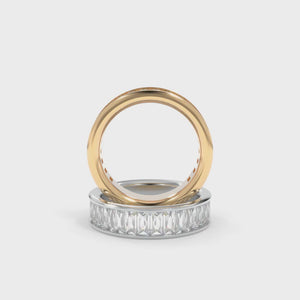The Parker Vertical Band takes the iconic Parker design to the next level with its bold and distinctive vertical diamond orientation. Available in 4x2mm French Cut baguettes, this version amplifies the original Parker's aesthetic while maintaining the signature "melty-channels" that define the collection. By turning the diamonds vertically, this band makes a powerful new statement, taking up more "real estate" on the finger for an eye-catching effect. Bold, nostalgic, and brilliantly executed, the Parker Vertical Band is a standout piece that redefines modern elegance.